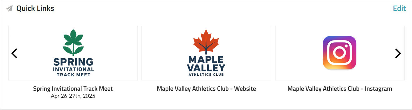 • External URL Quick Links: Got a site that’s not hosted on our platform? Maybe your club has an external website or social media page — now you can link directly to it from your dashboard.