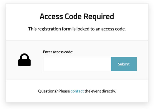 Implementing an access code offers a straightforward and effective approach to controlling registrations. With this method, only those possessing the correct code can access the registration form. This technique is beneficial as it allows you to conveniently share the code with selected individuals you wish to register. However, it's important to note that this method may not offer the highest level of security, as anyone with the code can easily share it with others.
