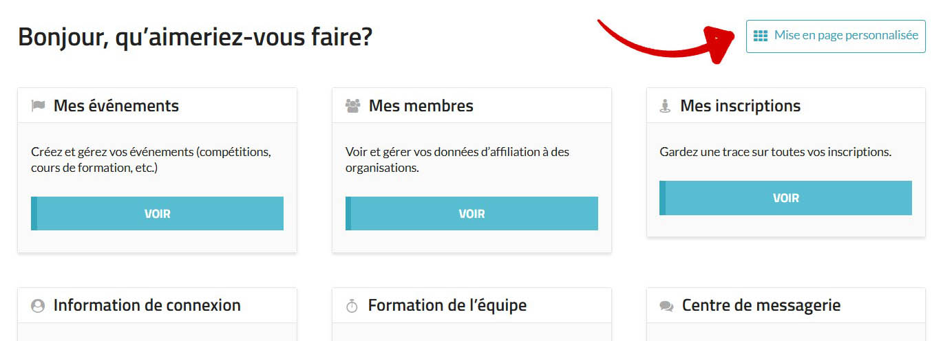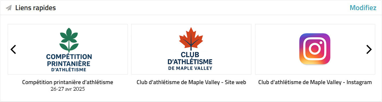 - Liens rapides pour les clubs : Même principe, mais pour votre club. Accédez rapidement aux détails du club, aux membres ou aux inscriptions.