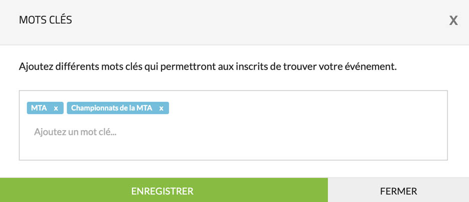 Saisissez vos mots-clés et cliquez sur « ENREGISTRER ».