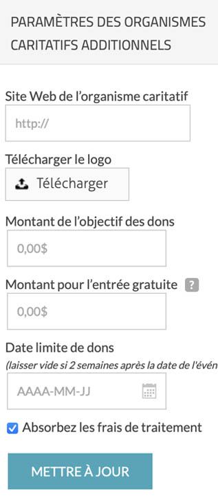 Ce lien vous permet d’ajouter plusieurs organismes caritatifs. |