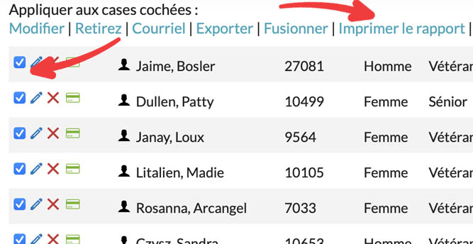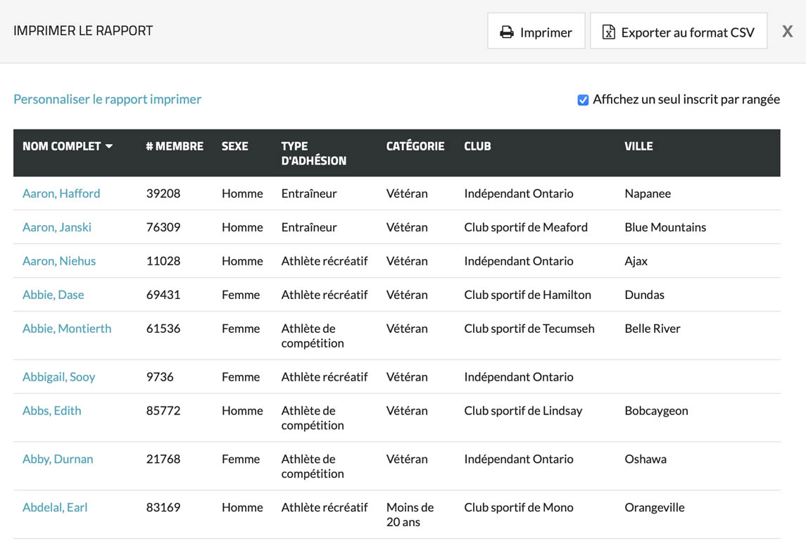 Veuillez noter que le système vous permet aussi d’« Imprimer le rapport » pour un sous-ensemble de vos inscrits en suivant les étapes suivantes :
