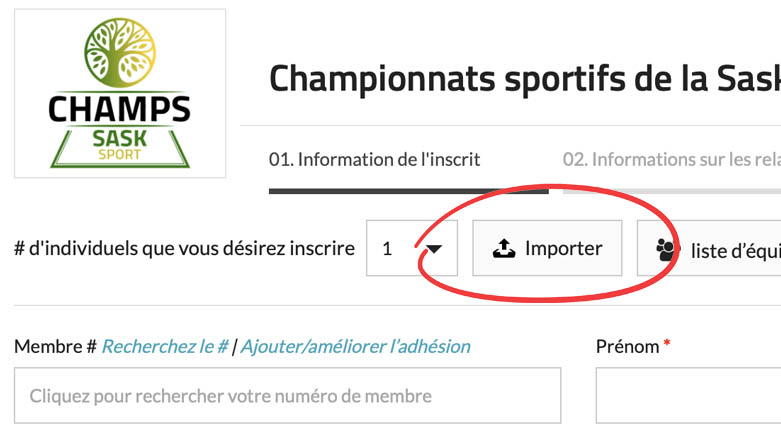 Cliquez sur le bouton « Importer » du formulaire d’inscription.