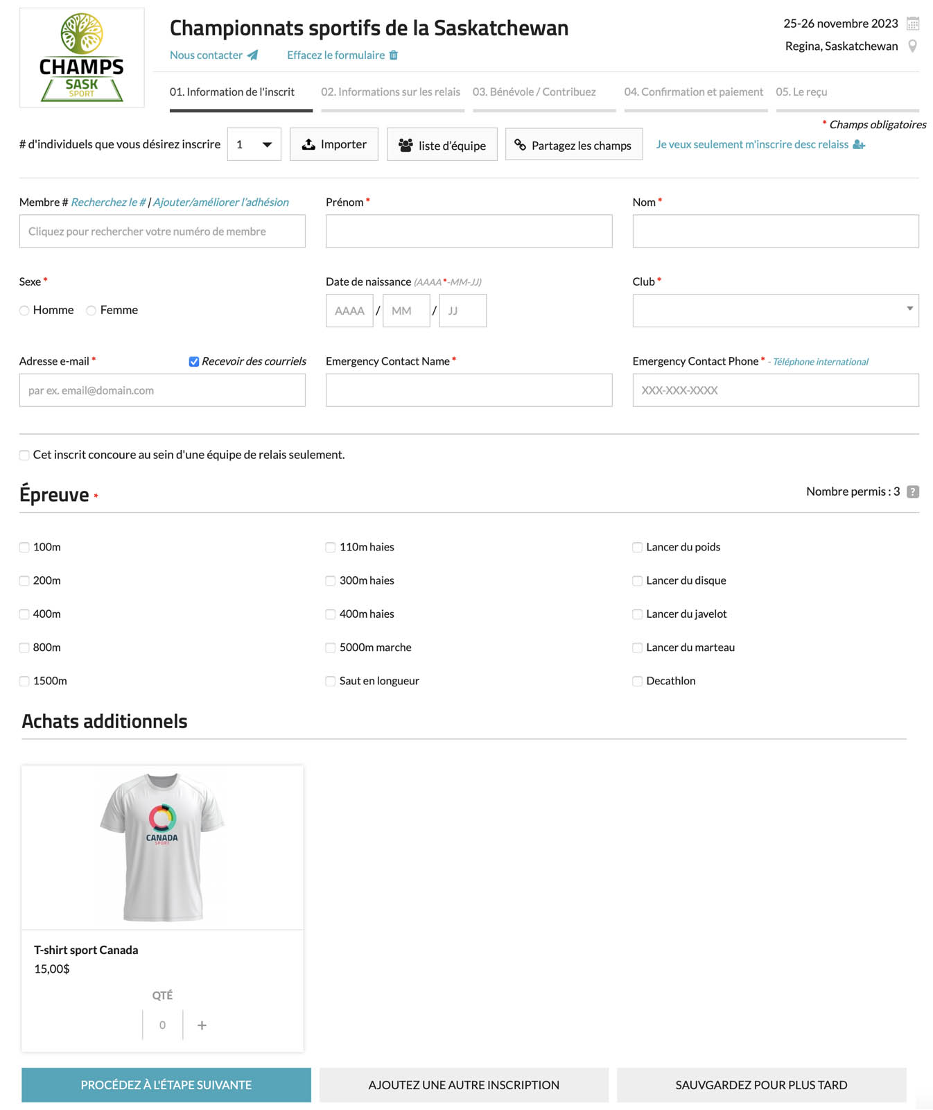 La procédure d’inscription peut varier en fonction de l’événement ou du club, qui peut exiger des informations différentes ou poser des questions spécifiques au cours de la procédure d’inscription.