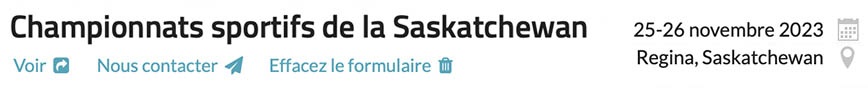 La barre de titre du formulaire d’inscription affiche généralement le titre et la date, ainsi que des liens utiles permettant d’accéder à des informations complémentaires, de contacter l’événement/le club ou d’effacer votre formulaire.