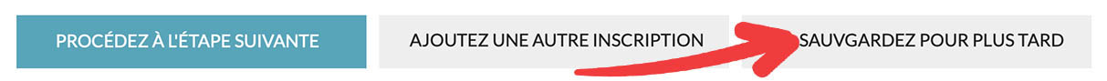 Cliquez sur le bouton « Enregistrer et compléter plus tard » situé au bas du formulaire d’inscription.
