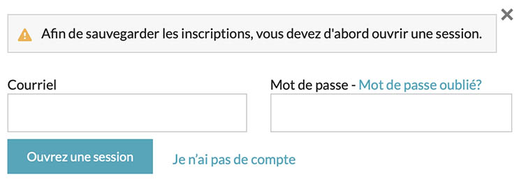 ImportantVeillez à terminer votre inscription avant la date limite d’inscription. Quand vous utilisez la fonction « Enregistrer et compléter plus tard », vos inscriptions ne sont pas considérées comme complètes tant que vous n’avez pas finalisé le processus d’inscription.