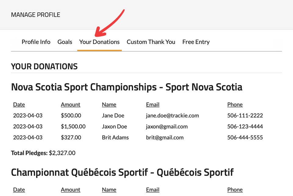 3. Your Donations: You can use this section to keep track of all the donations you've received so far.