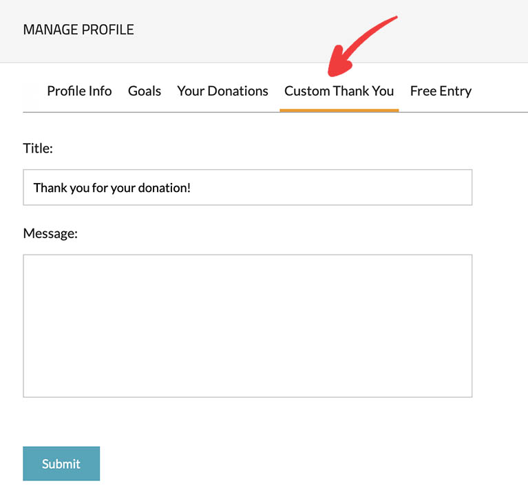 4. Custom Thank You: In this section, you can create a personalized thank-you message that will be automatically sent to your donors via email.