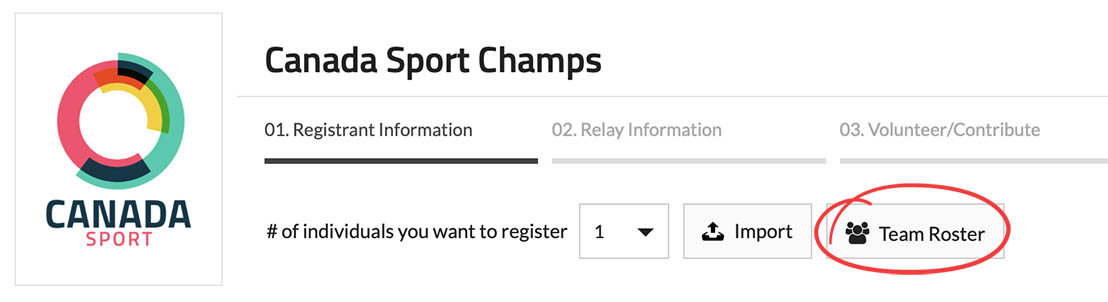 3. On the registration form, click on the "Team Roster" button.