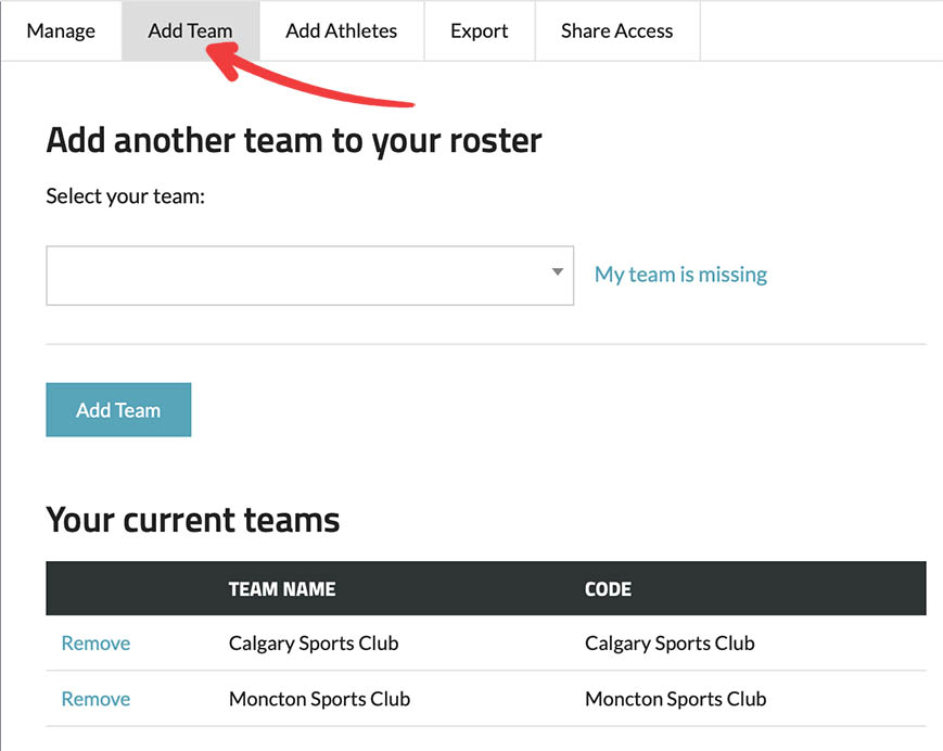It is important to note that you always have the ability to add more than one team to your profile. This is particularly useful if you are coaching multiple teams, such as a school team and a club team.