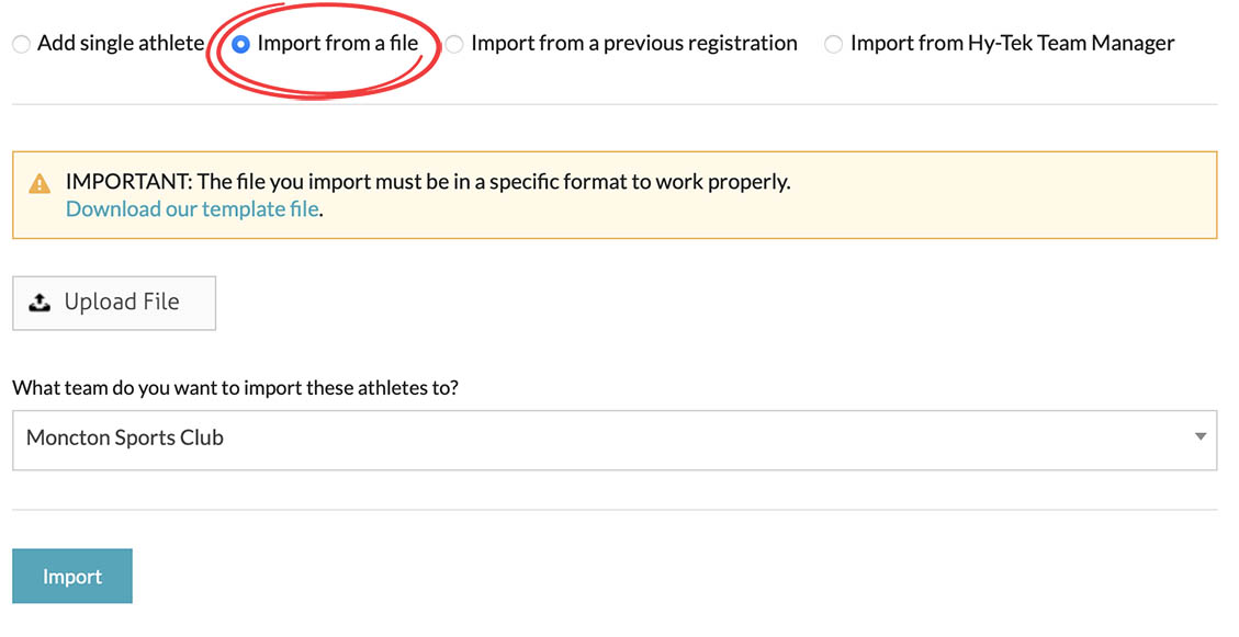 2. Import from a file: Import a CSV file so you can add many athletes at one time.